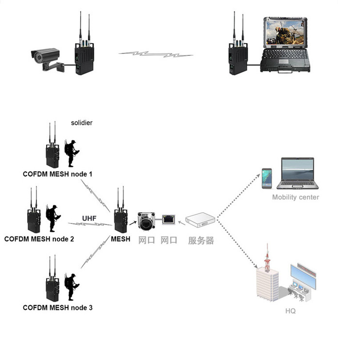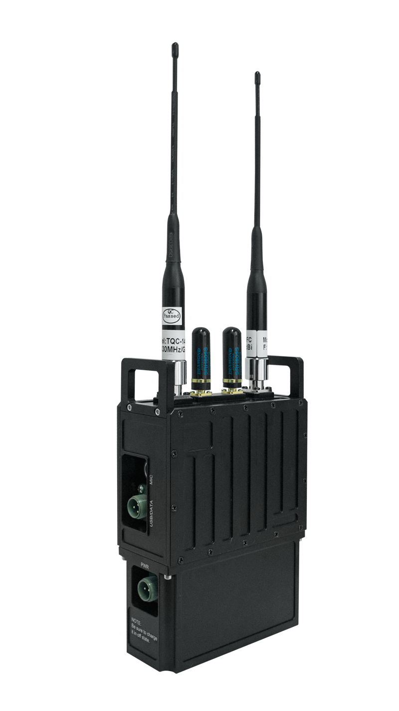 手持型寬帶無線自組網(wǎng)設(shè)備基于軟件無線電體系架構(gòu)進行實現(xiàn),采用自主研發(fā)的COFDM波形、高效信道編解碼和多跳自組網(wǎng)協(xié)議等技術(shù),具備很強的對抗復雜信道環(huán)境能力,實現(xiàn)在復雜場景下完成單兵、車輛、無人機等機動點、固定點之間的無中心同頻自組網(wǎng)寬帶業(yè)務(wù)傳輸。設(shè)備體積小、功耗低、易于單兵手持攜帶。