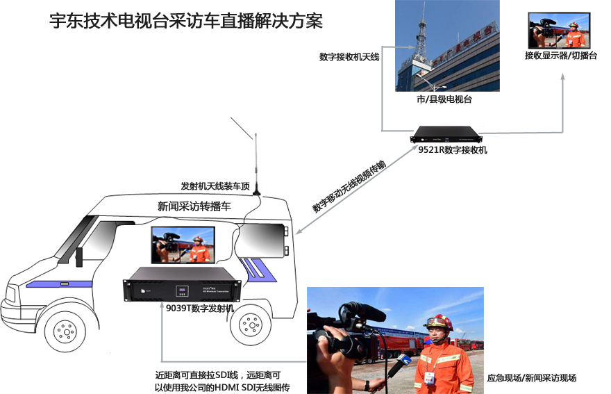 廣播 電視臺現(xiàn)場采訪車無線視頻信號遠(yuǎn)距離傳輸,直接在車上安裝車載無線圖傳系統(tǒng),配合車載播出系統(tǒng)切換系統(tǒng),能實時將多路攝像頭信號,任意切換后通過無線發(fā)射,直接在電視臺播出機(jī)房接收到現(xiàn)場信號,再通過光纖鏈路,傳輸?shù)诫娨暟l(fā)射塔,通過開路電視發(fā)射出去,也可以通過有線電視線路傳輸。指揮中心或者老百姓就可以通過足不出戶,看到活動場面的實時畫面。