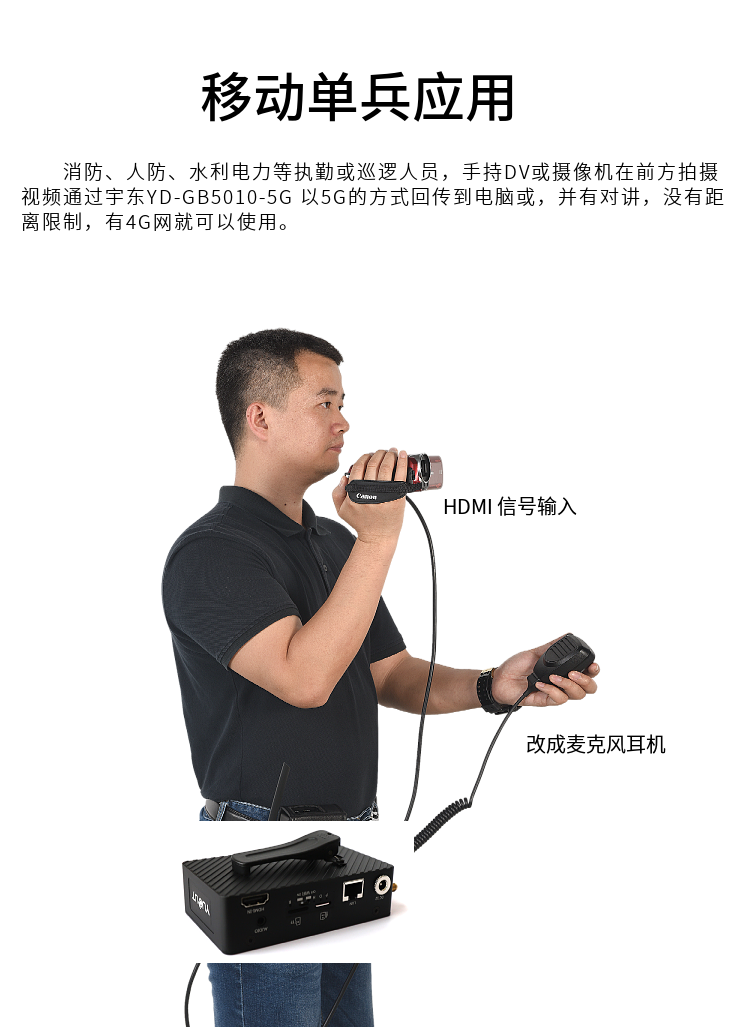 YD-GB5010-5G設備基于先進的 H.265 視頻編碼技術和 5G 無線信道捆綁傳輸技術開發(fā)的新一代產(chǎn)品。支持支持 5G、4G 網(wǎng)絡模式,采用 H.265(HEVC)超低碼率,F(xiàn)EC 前向糾錯技術,獨有的 UDP 快速冗余容錯,PID 控制的自適應帶寬編碼和傳輸, 1M 輕松傳輸送 1080P 視頻。