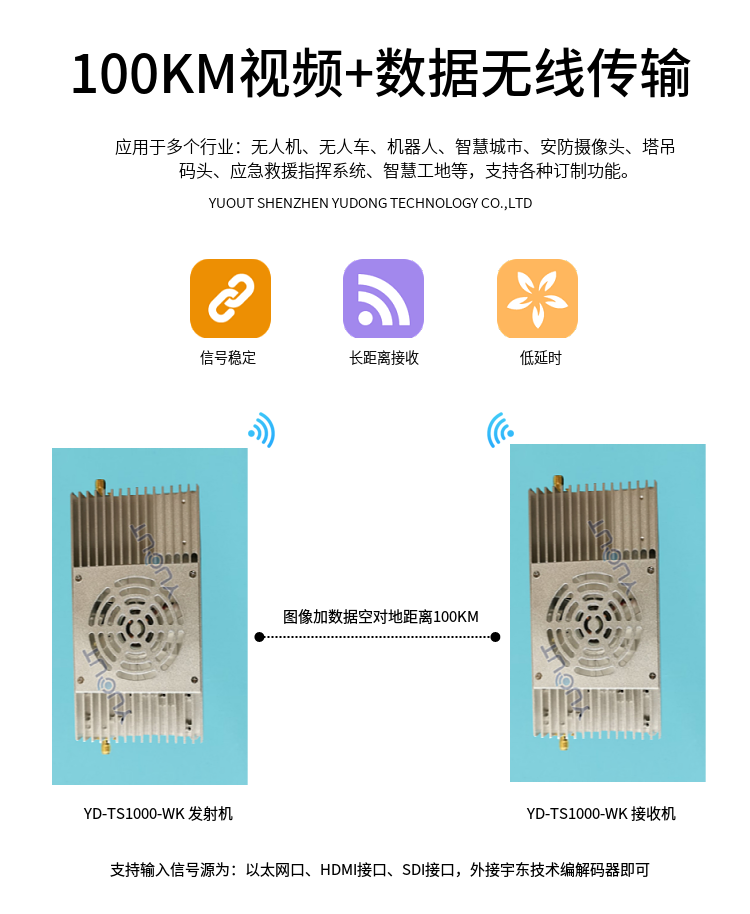 YD-TS1000-WK是圖數(shù)一體無(wú)線發(fā)射機(jī),內(nèi)置雙向OFDM無(wú)線鏈路,支持單向無(wú)線視頻發(fā)射、雙向無(wú)線語(yǔ)音傳輸、雙向無(wú)線網(wǎng)絡(luò)透?jìng)鳌㈦p向無(wú)線串口透?jìng)鳌?br />