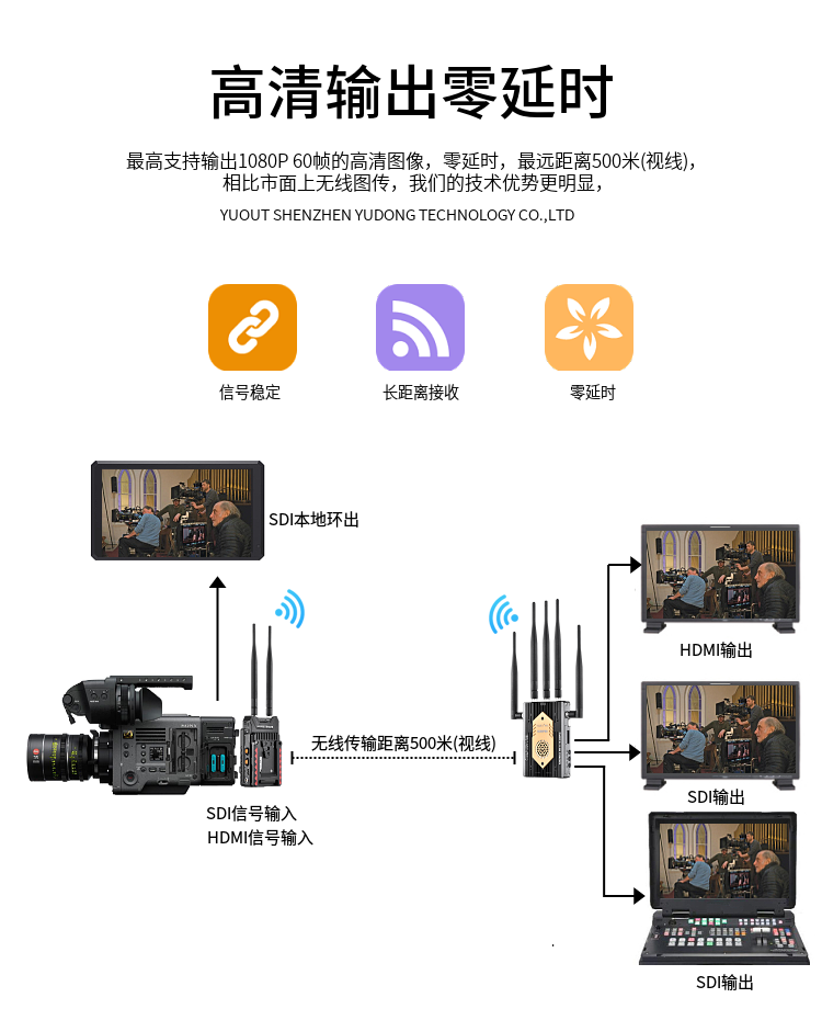 | 傳輸距離/延時 | 空曠距離最遠可達約500米 | 無壓縮零延時 |
