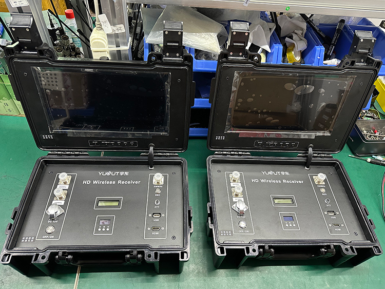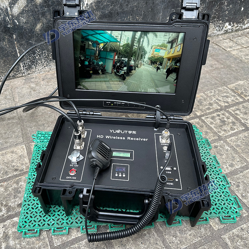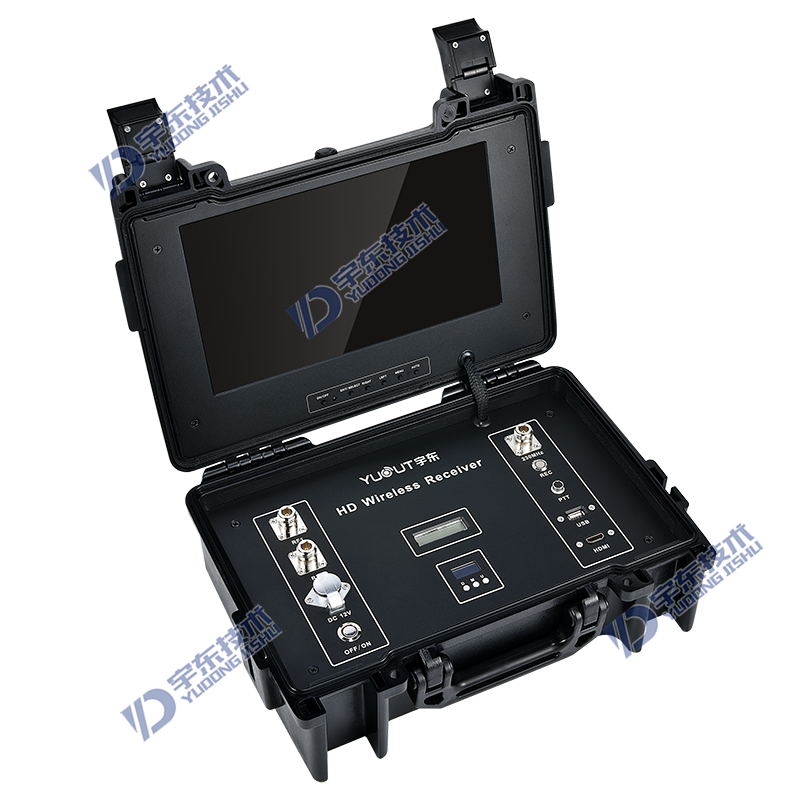 11、接收機為便攜式手提箱類型,支持插USB錄像,自帶顯示屏,可接收并顯示發(fā)射機視頻